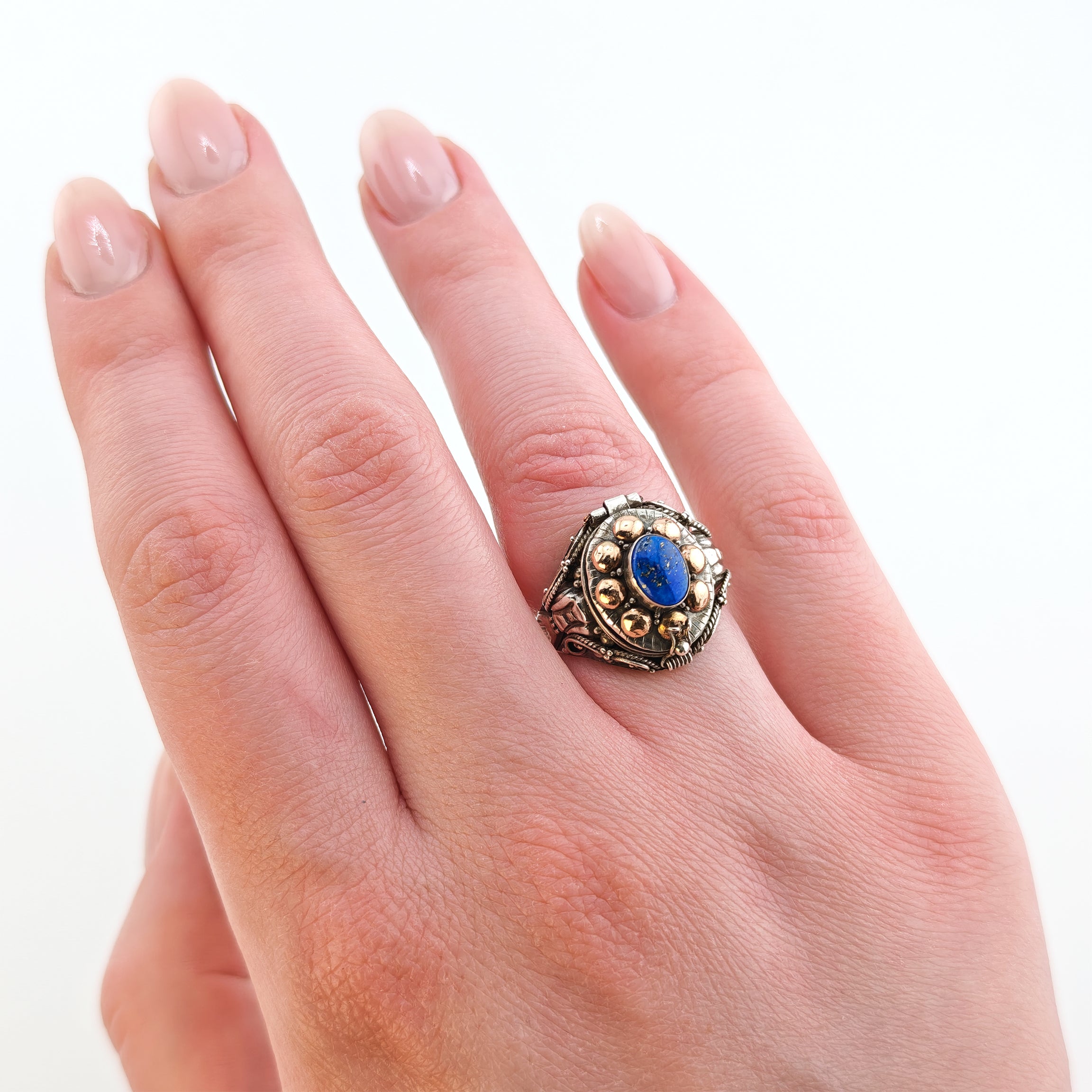 Art Déco Silber-Geheimfachring mit Tansanit um 1930