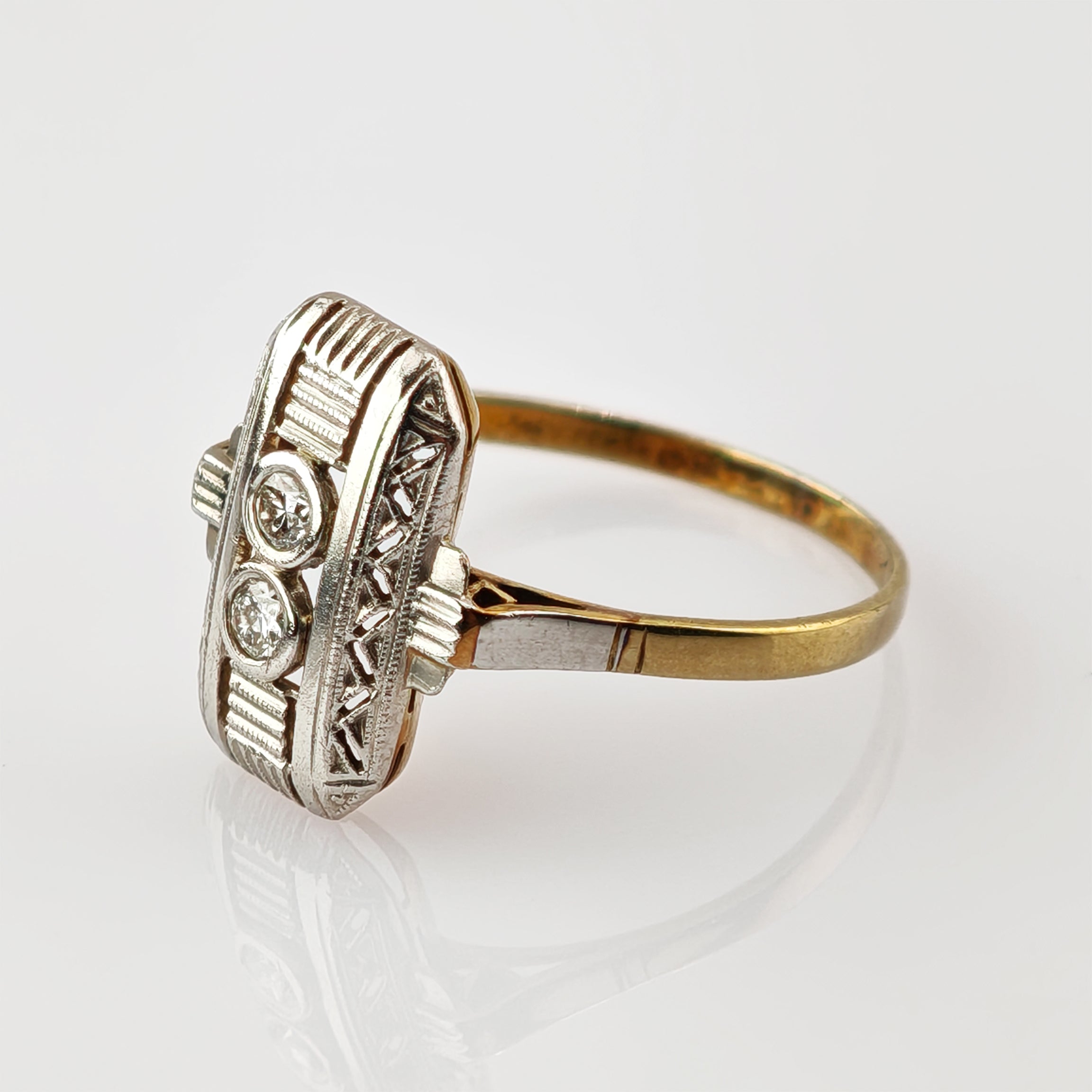 Art-Déco-Damenring aus Gelbgold mit Brillanten