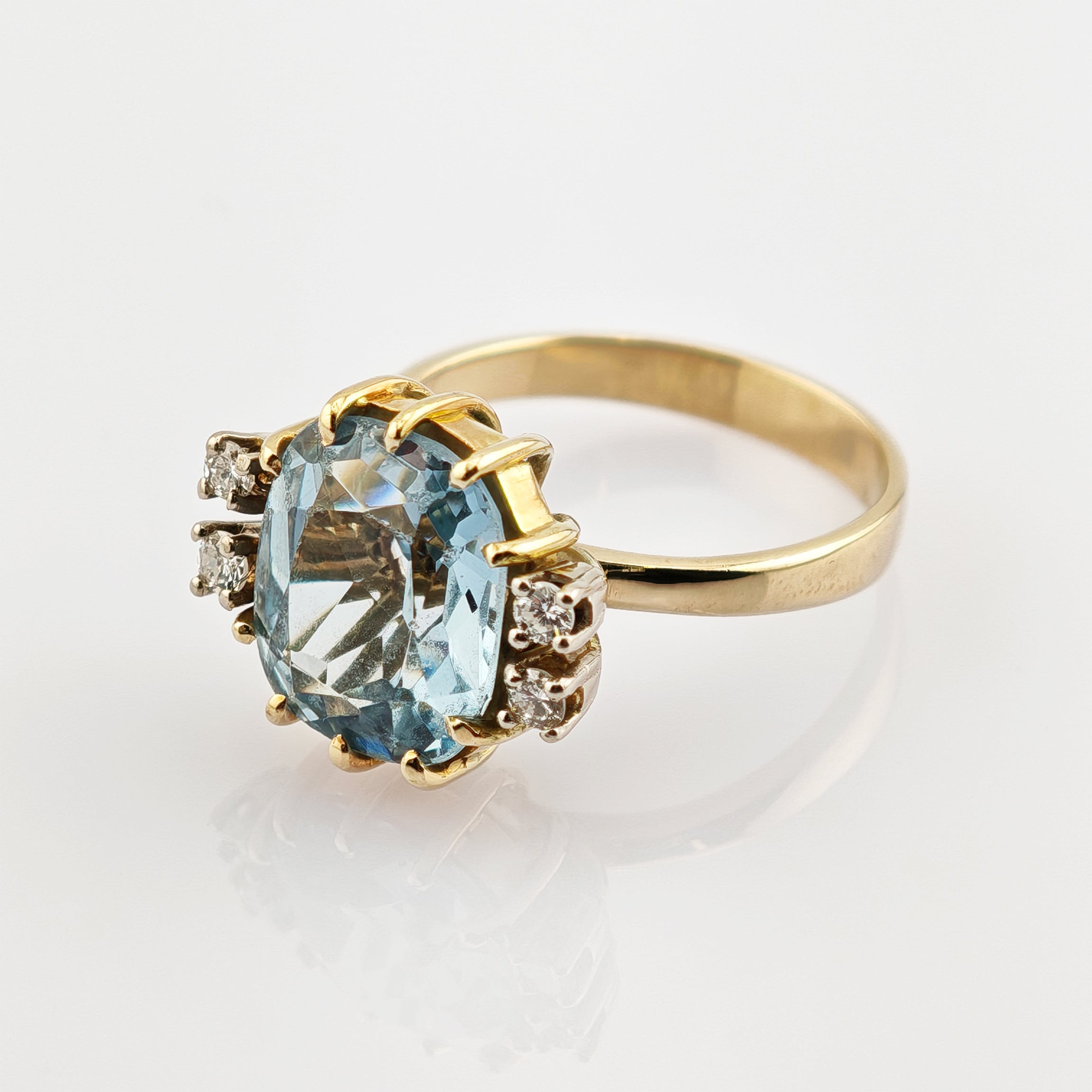 Eleganter Goldring mit Blauen Topas und Diamanten