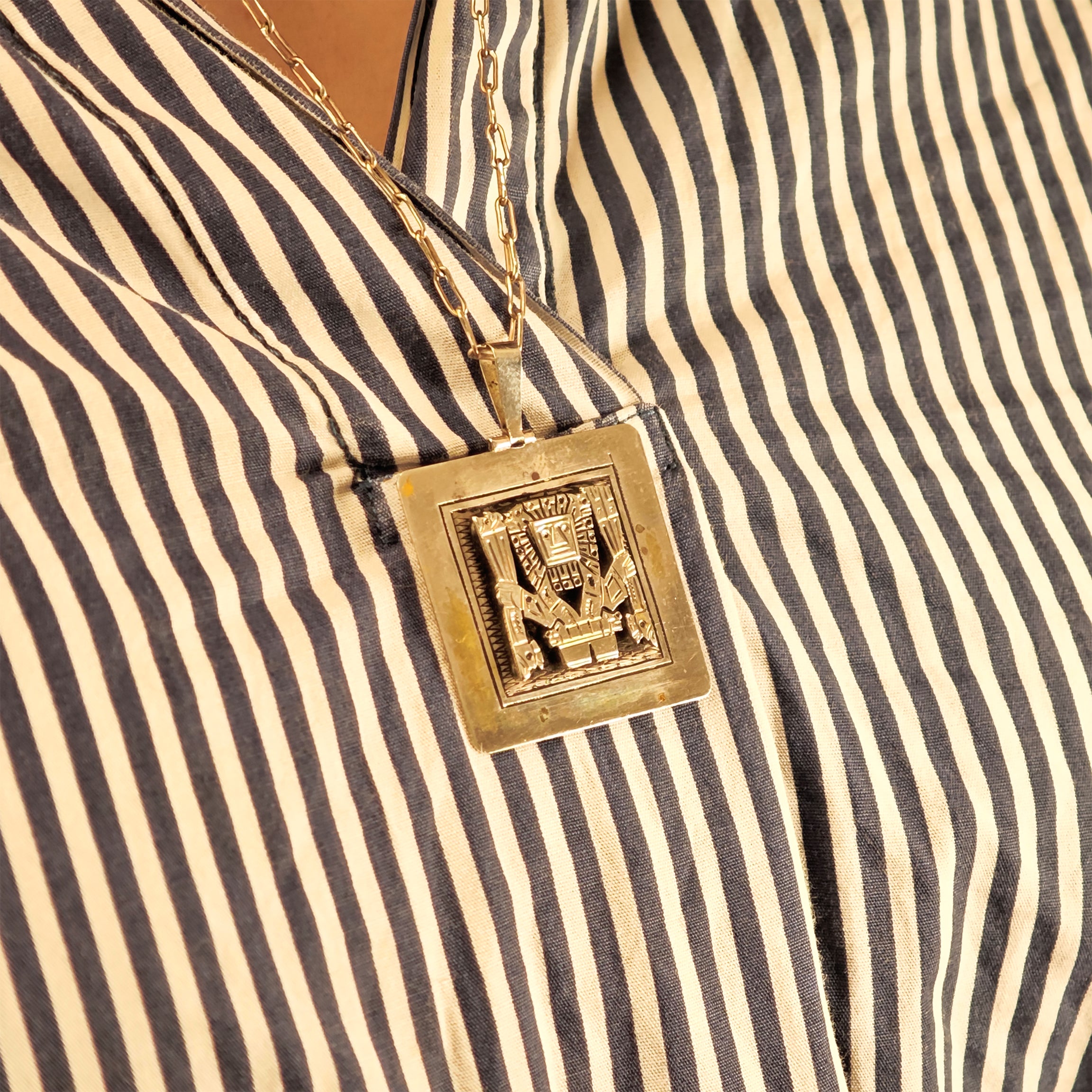 Silberner Inka-Maya-Anhänger mit Ankerkette