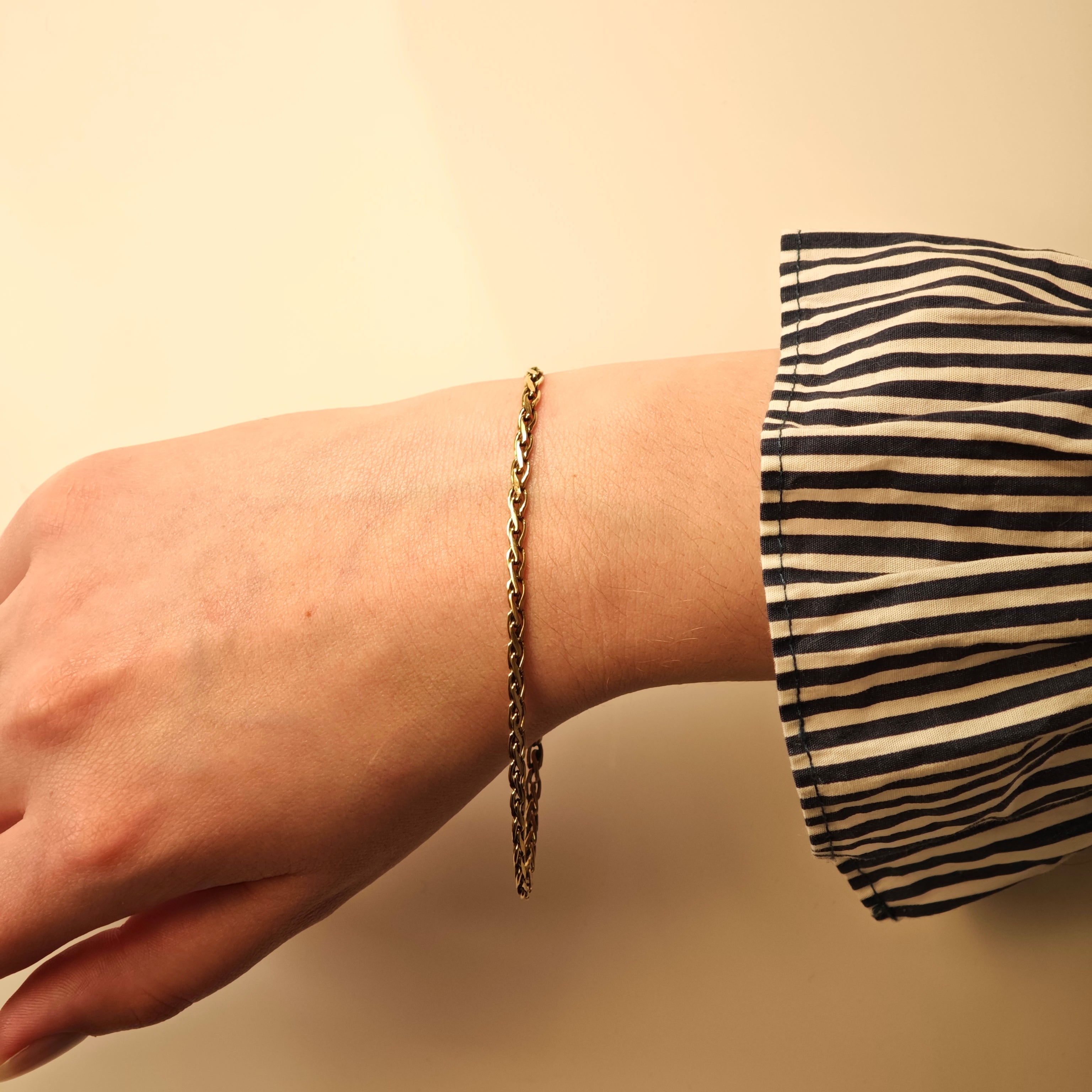 Gefertigt aus hochwertigem 585er Gold, vereint dieses Schmuckstück klassische Eleganz mit langlebiger Wertigkeit. Die Zopfkette, seit Jahrhunderten ein Symbol für Beständigkeit und Zusammenhalt, unterstreicht die zeitlose Schönheit dieses Armbandes.