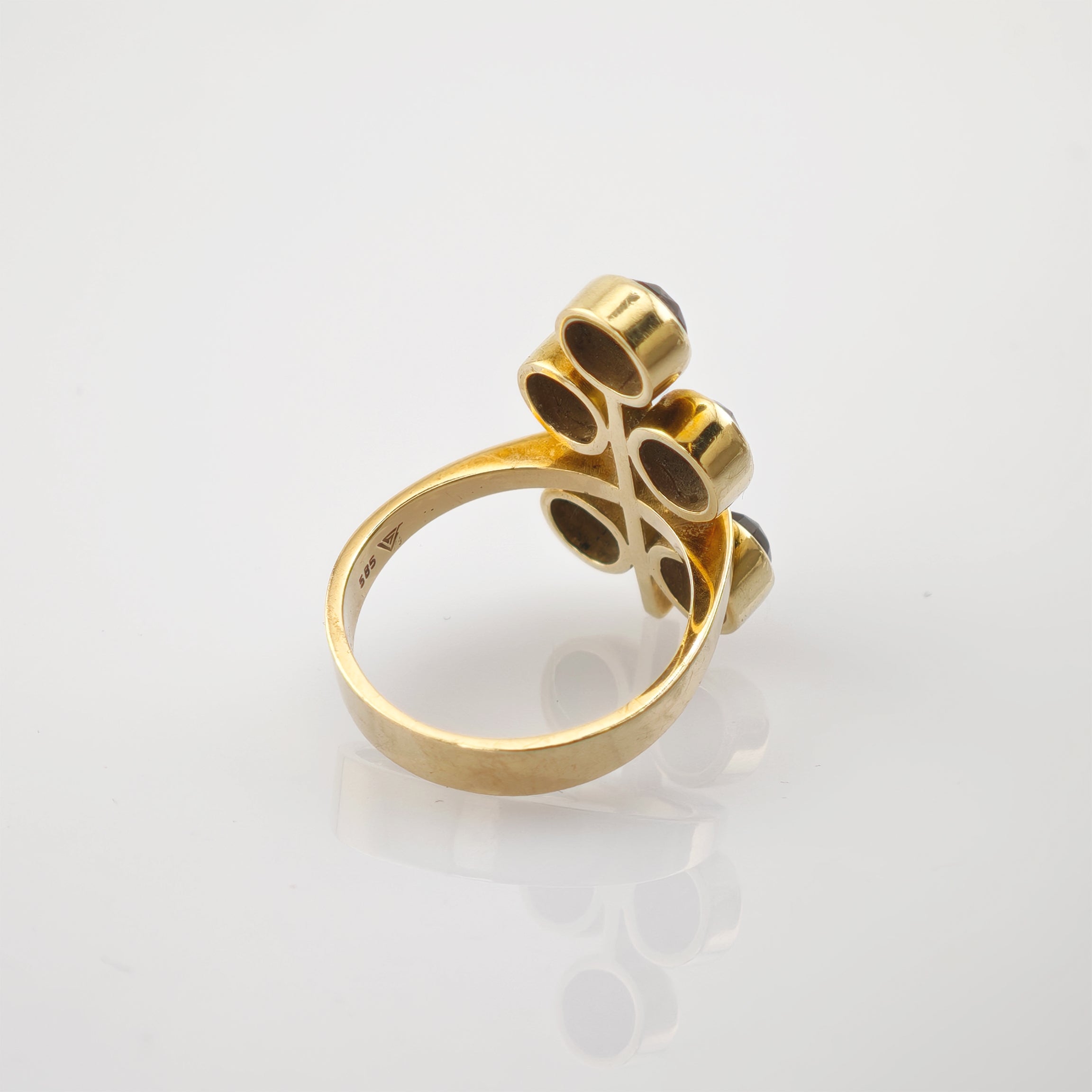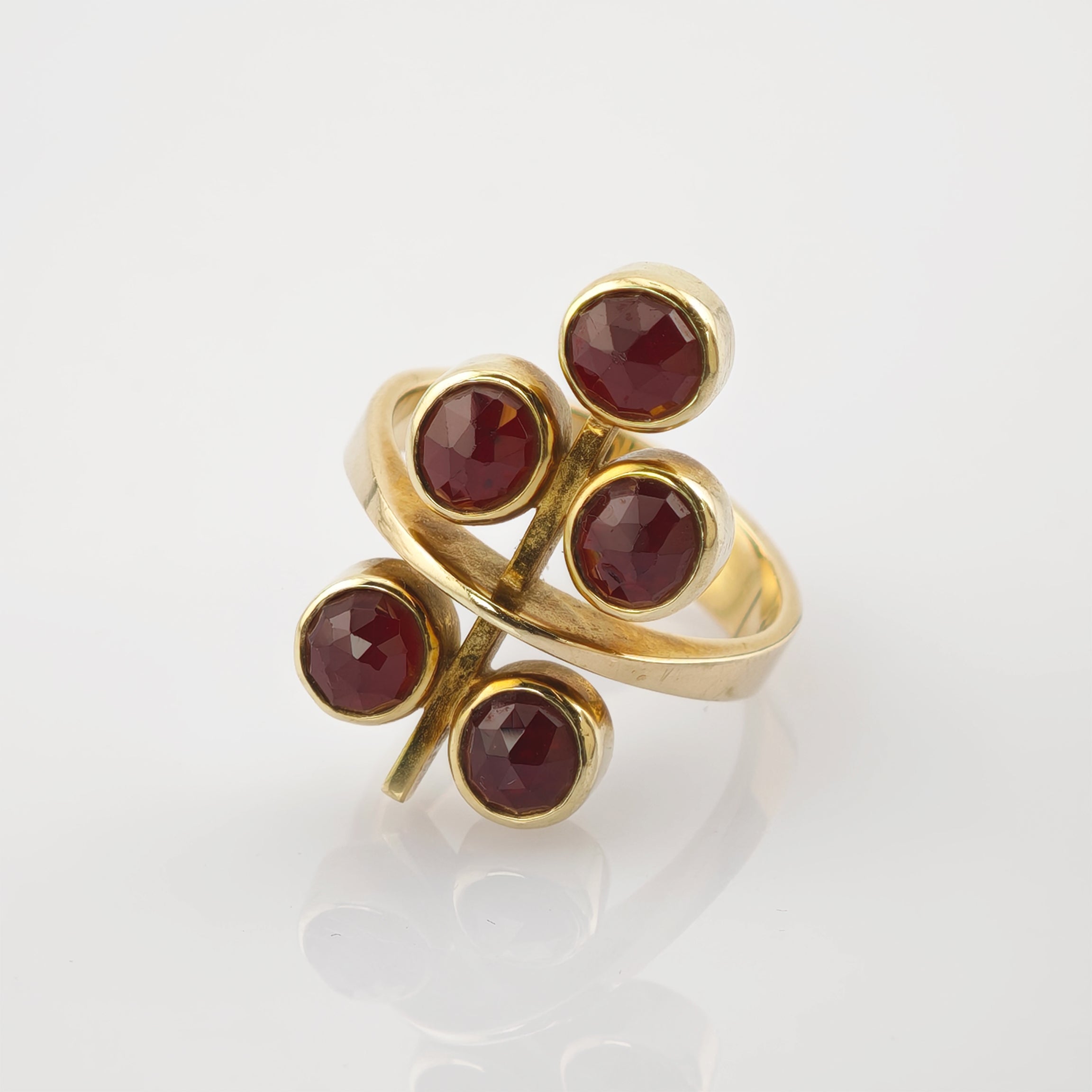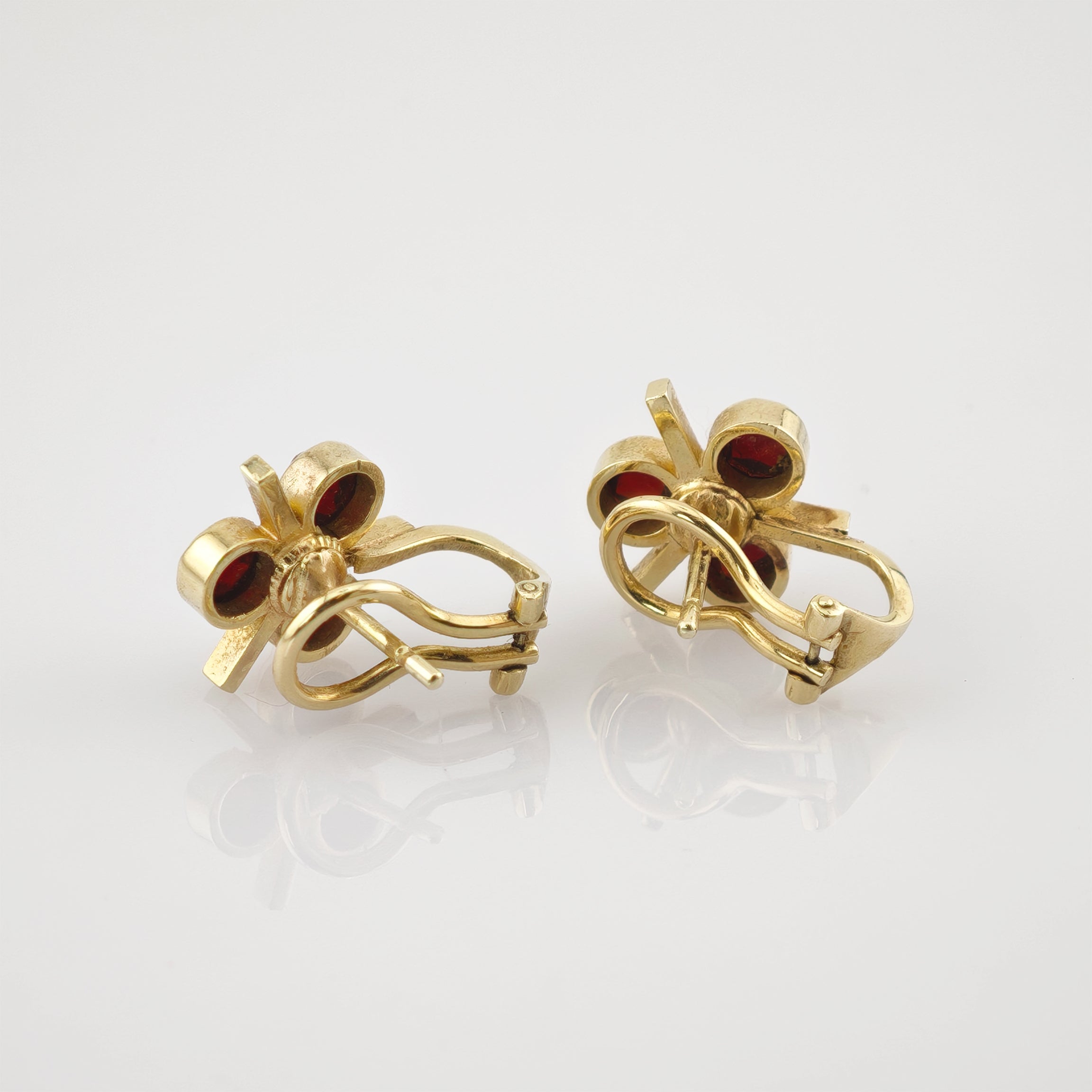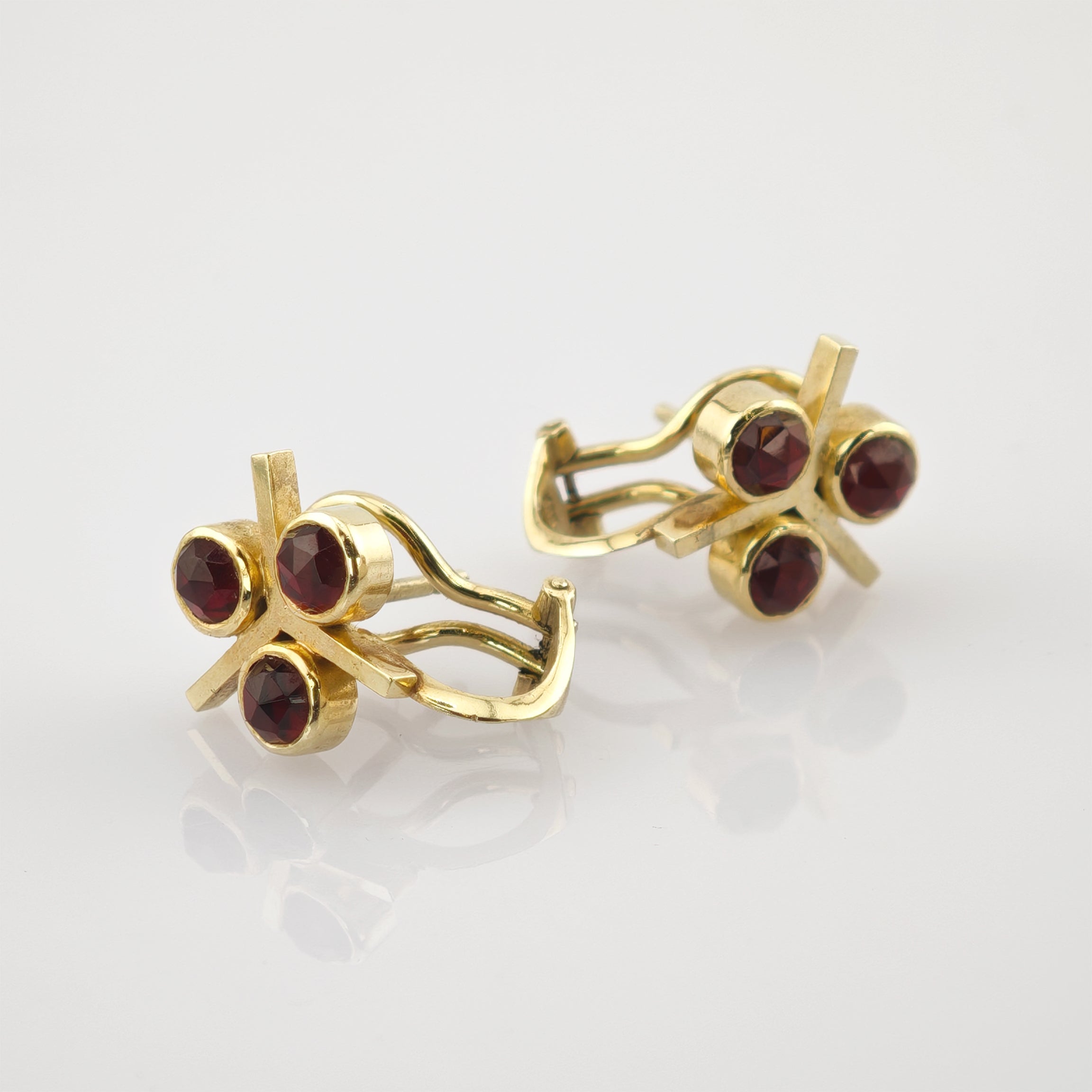 Elegantes Granat-Schmuckset aus Gold, bestehend aus Ring und Ohrclips, um 1970