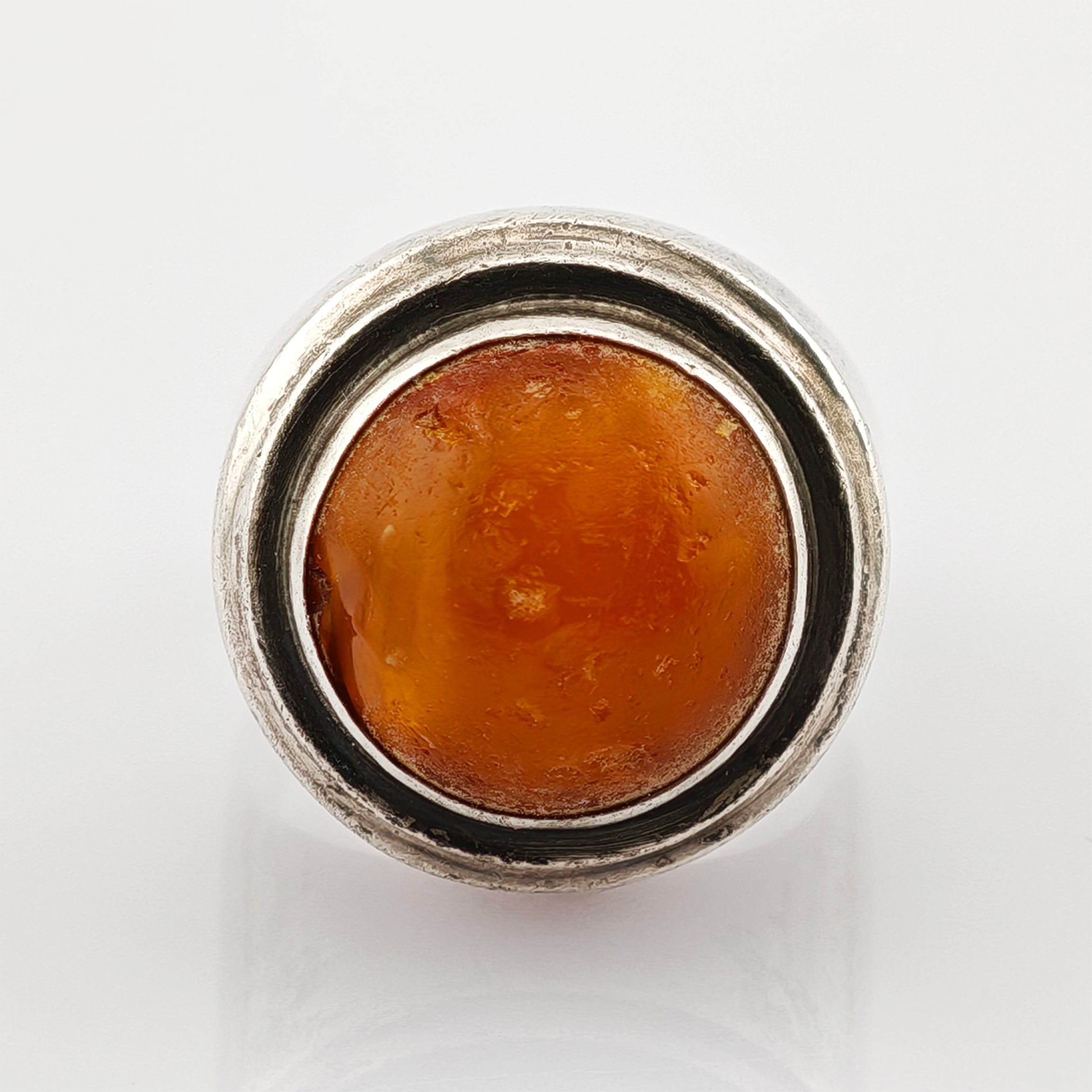 „Amber Horizon“ – ein ausdrucksstarker Silberring, der die goldene Tiefe des Bernsteins in moderner Schlichtheit erstrahlen lässt.