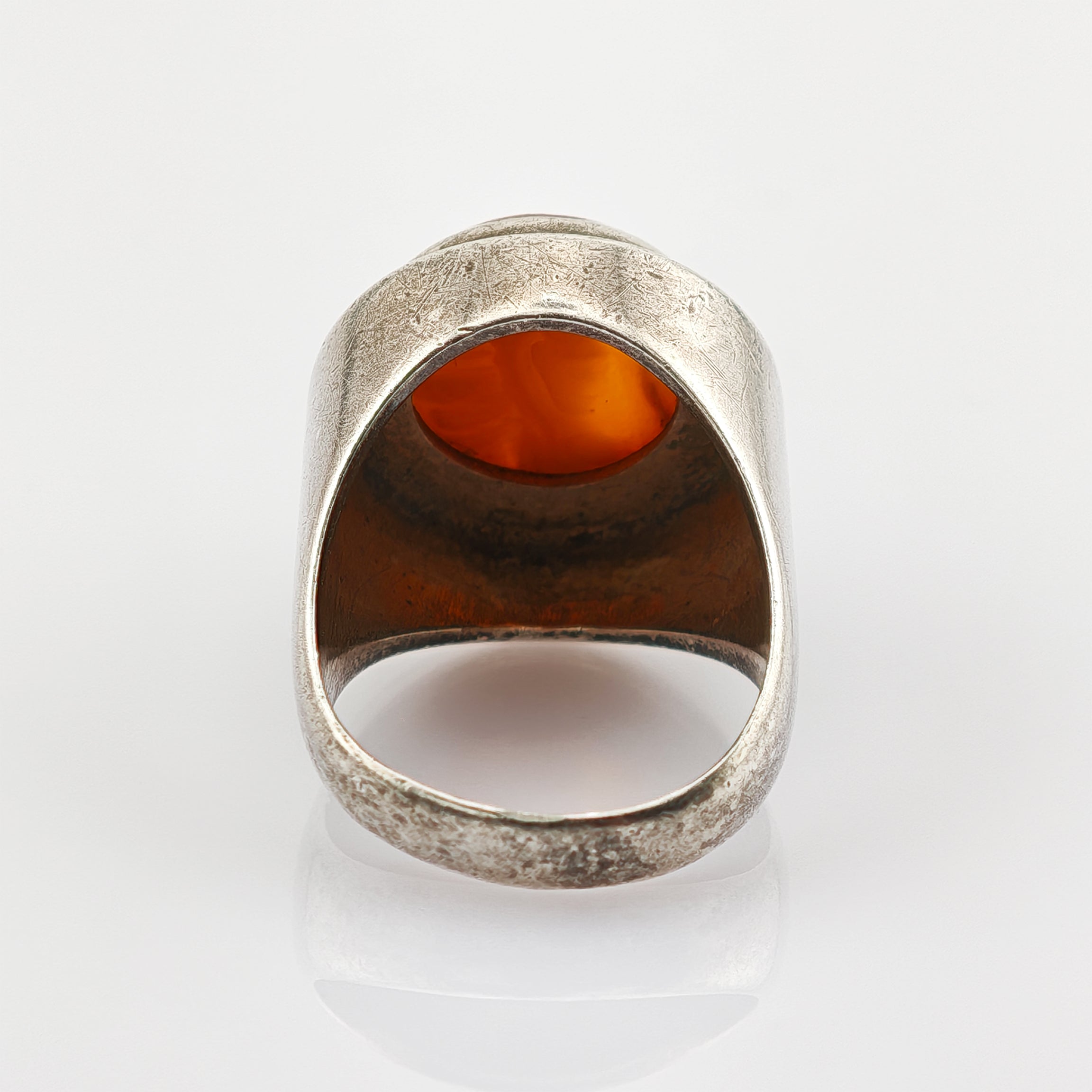 Das reduzierte, moderne Design mit seiner klaren Linienführung lässt den faszinierenden Stein im Mittelpunkt stehen – ein Stück fossiler Geschichte, das über Jahrmillionen entstanden ist. Die Oberfläche des Silbers zeigt eine zarte Patina, die dem Ring zusätzlichen Vintage-Charme verleiht.