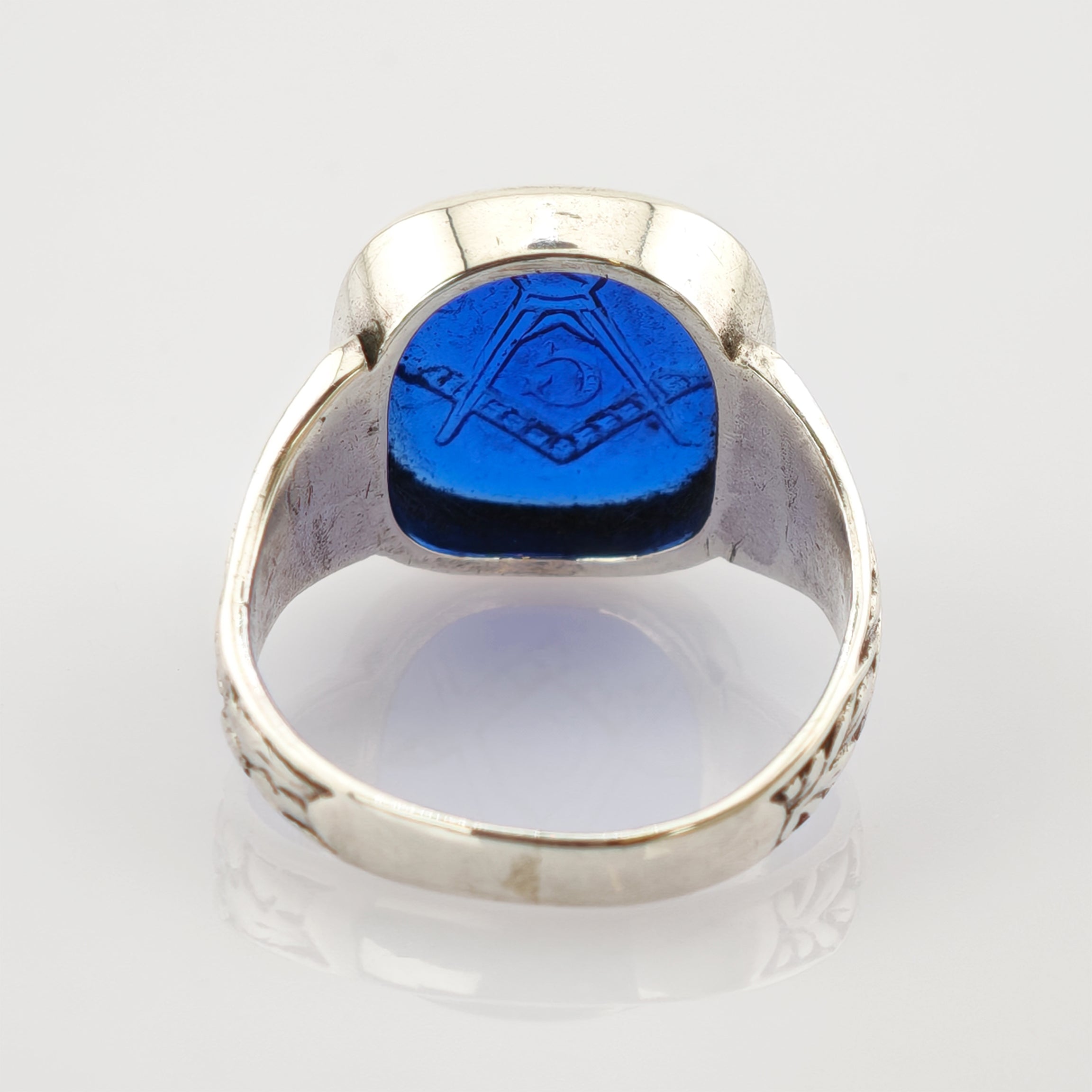 Freimaurer-Ring aus Silber mit kunstvoll graviertem Stein