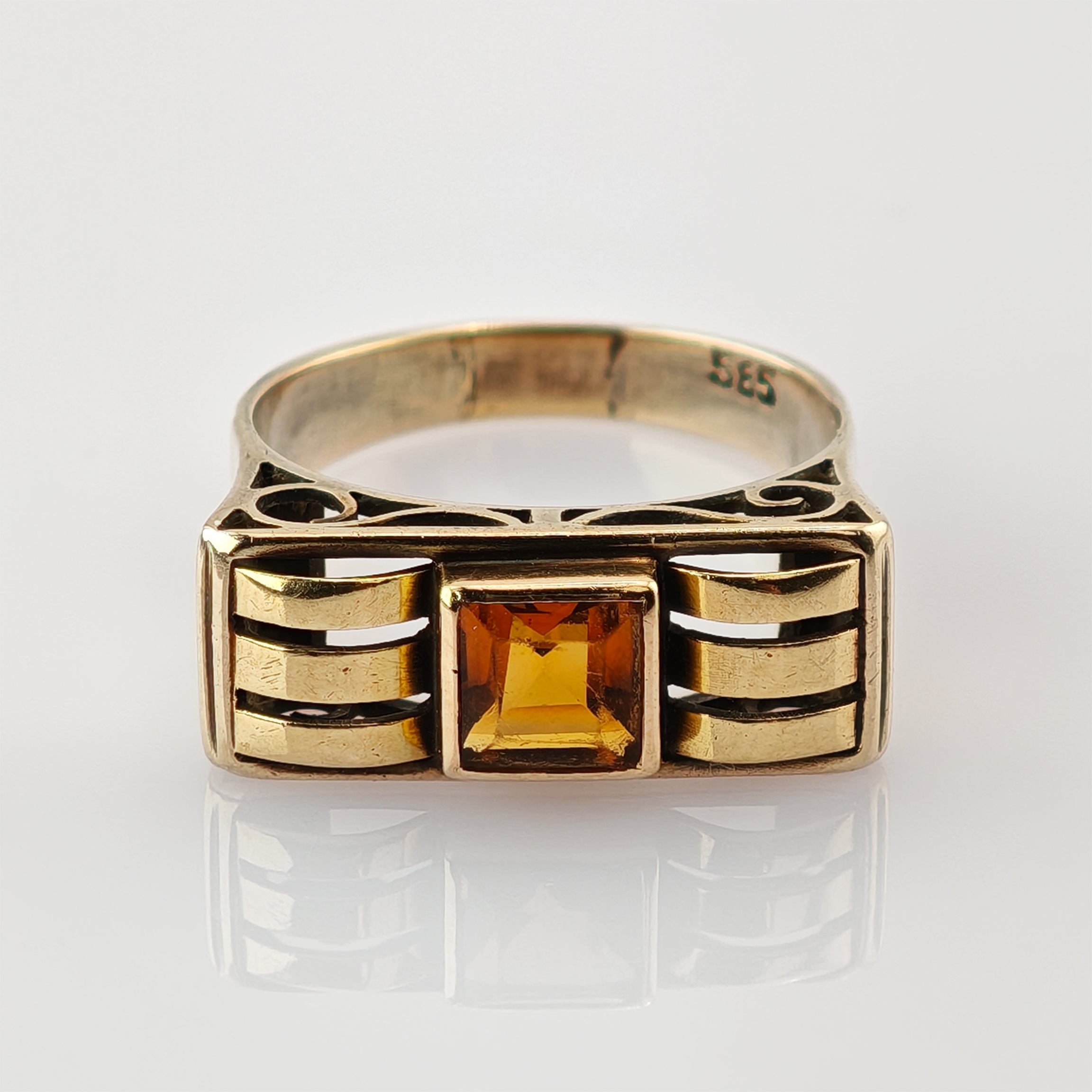 Art-Déco-Ring aus Gelbgold mit Citrin