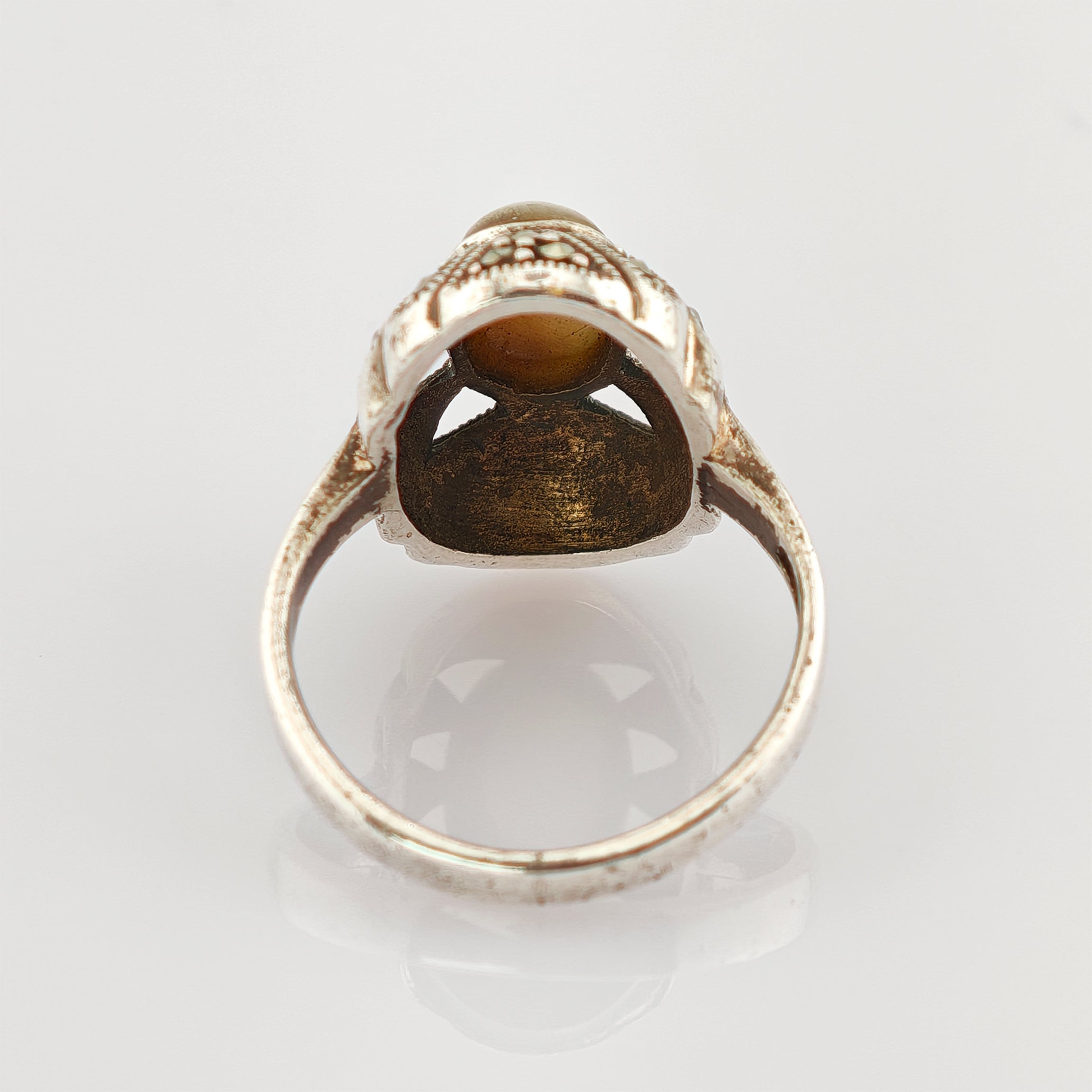 Art-Déco Silberring mit Mondstein und Markasiten aus den 1930er Jahren
