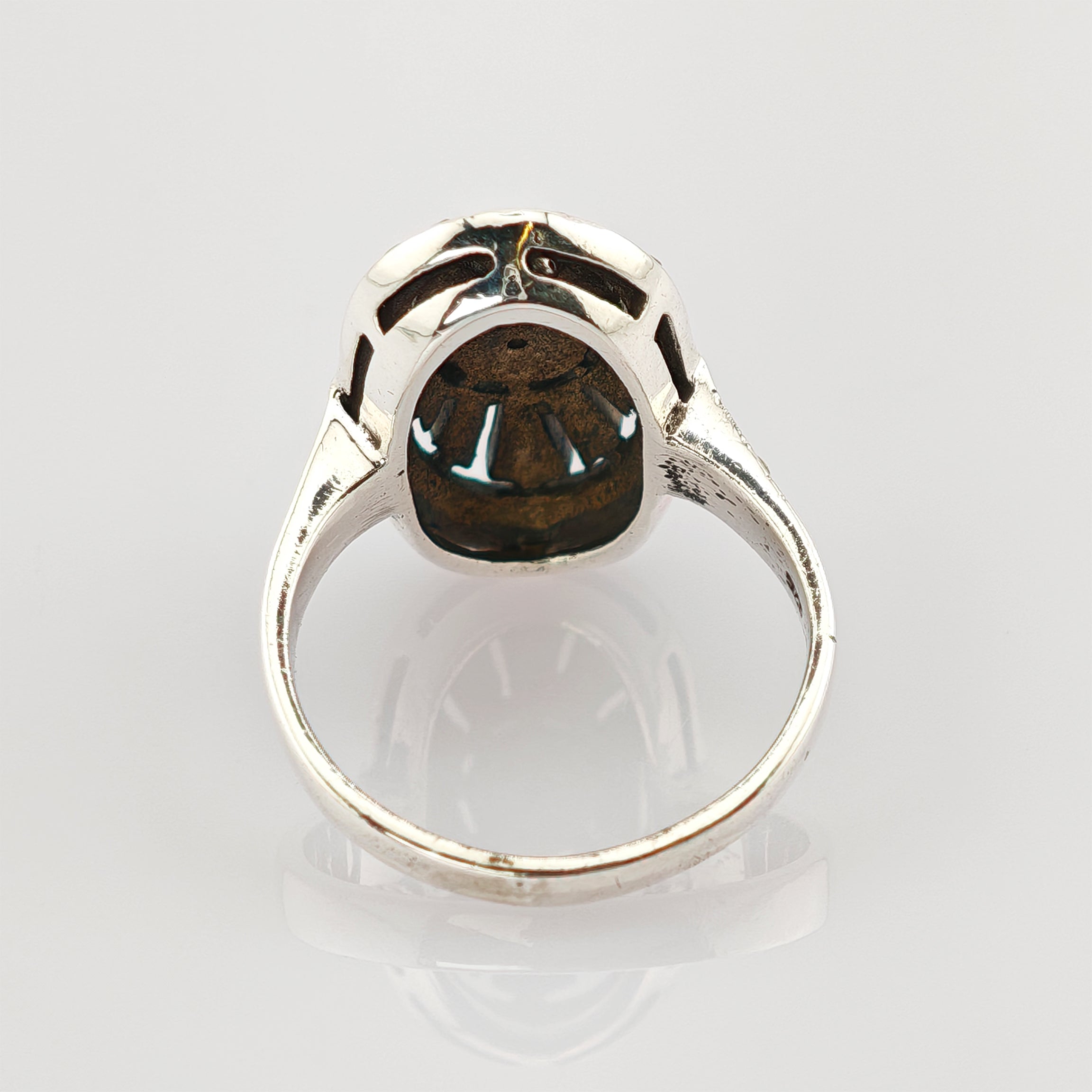 Die aufwendig gearbeitete Ornamentik, kombiniert mit der filigranen Silberschmiedekunst, verkörpert den Geist der 1920er-Jahre – elegant, selbstbewusst und stilvoll. Der Ring schmiegt sich angenehm an den Finger und wirkt zugleich wie ein kleines architektonisches Kunstwerk.