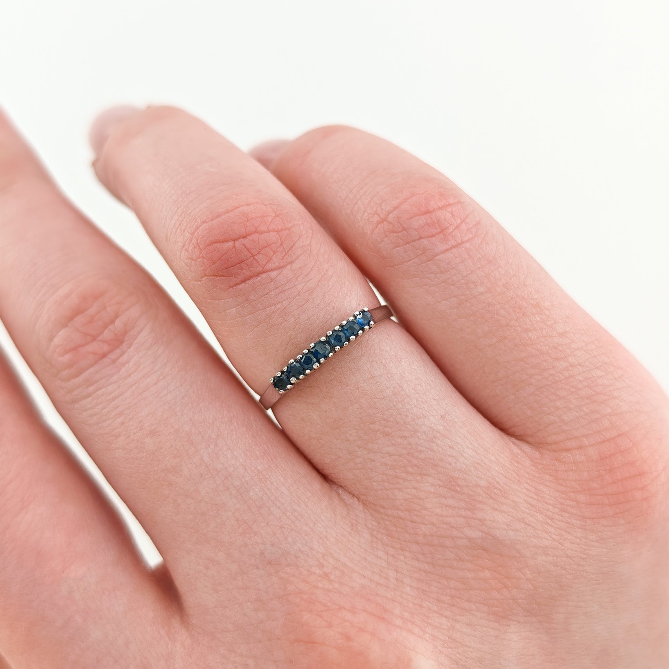 Eleganter Weißgold-Ring mit 7 blauen Spinellen